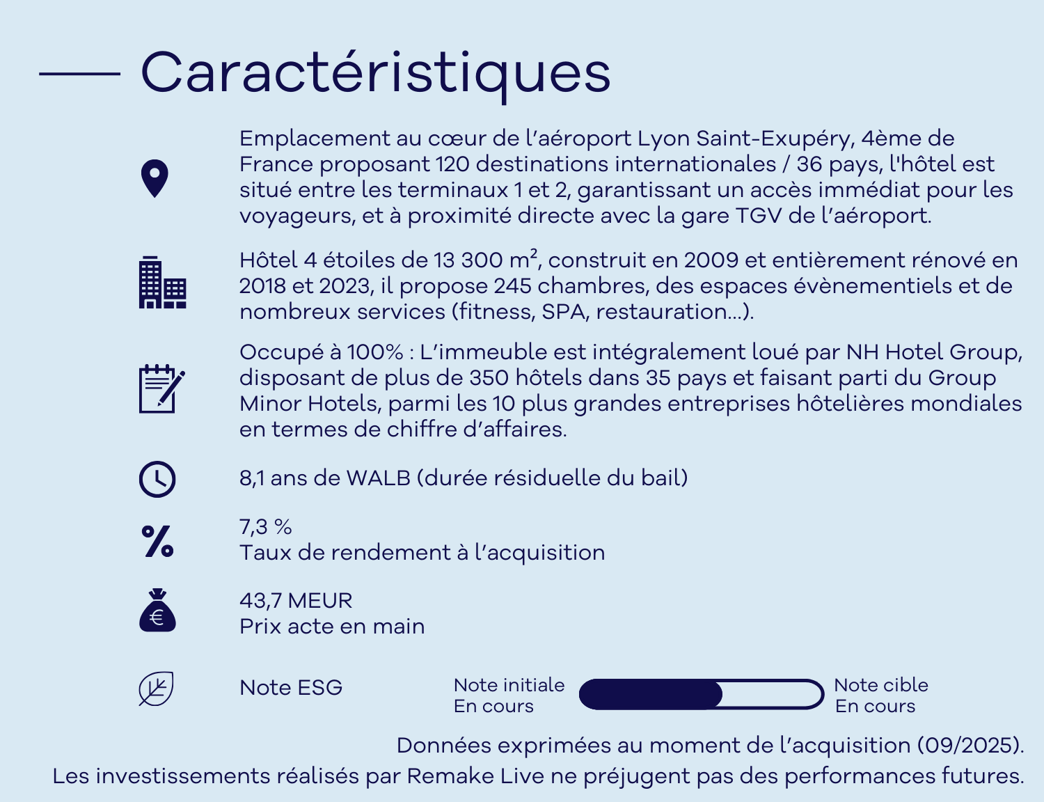 Remake poursuit son expansion avec l’acquisition d'un hôtel 4 étoiles, situé à l’aéroport Lyon Saint-Exupéry, pour le compte de sa SCPI Remake Live.