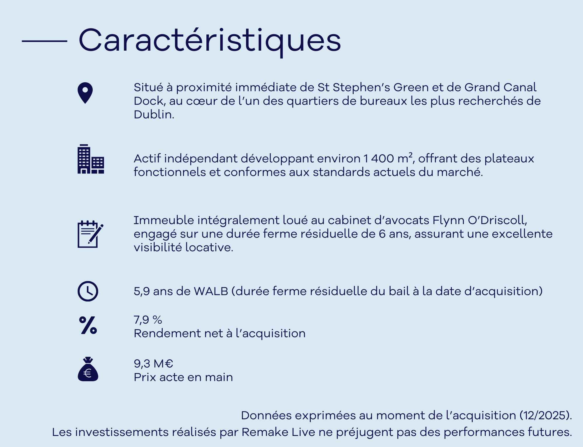 • Une occupation à 100 % par le cabinet d’avocats Flynn O’Driscoll, engagé pour 6 ans fermes